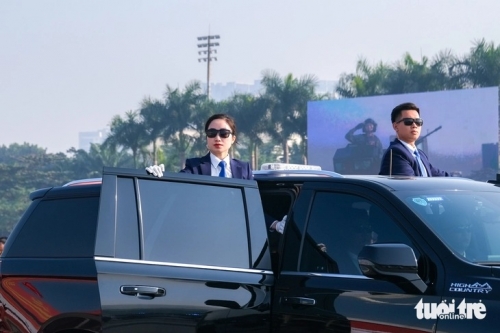 Nữ cảnh vệ xuất hiện ấn tượng trên các chiếc Chevrolet Suburban - Ảnh: HÀ QUÂN |