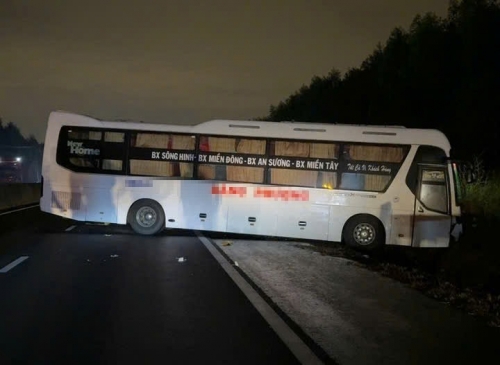 Vụ va chạm thứ hai cũng liên quan một xe khách. Phương tiện này nghi mất lái, tông ngã 8 cục bê tông dải phân cách và làm hư hỏng khoảng 5m hộ lan mềm bên lề đường.