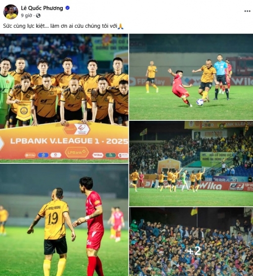 Sau trận đấu trên sân Thanh Hóa, tiền vệ Lê Quốc Phương đã đăng ảnh trận đấu với CLB CAHN, kèm dòng trạng thái: “Sức cùng lực kiệt… làm ơn ai cứu chúng tôi với”.