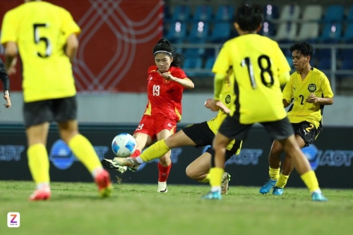 Hàng thủ Malaysia hoàn toàn bất lực trước các cô gái Việt Nam. Ảnh: Minh Chiến (từ Thái Lan). |