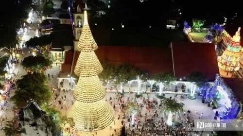 Giáo xứ Hà Phát ghi nhận hàng nghìn lượt khách đến chiêm ngưỡng và chụp hình check-in với cây thông khổng lồ mỗi ngày. |