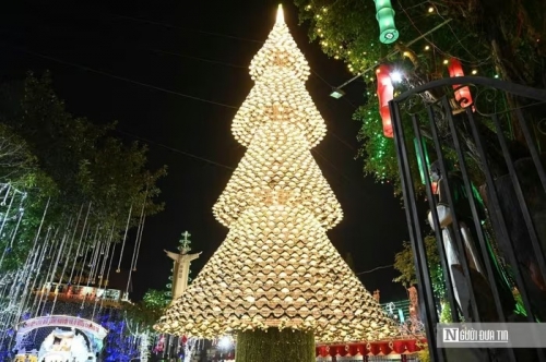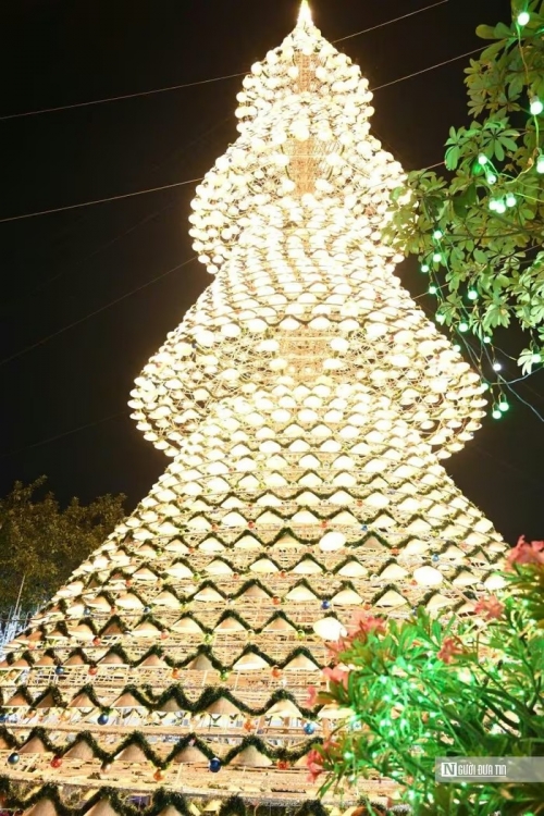 Cây thông Noel cao 35m được tạo nên từ gần 3.000 chiếc nón lá Việt Nam tại nhà thờ Hà Phát (phường Long Bình) đã lên đèn rực rỡ, trở thành điểm nhấn đặc biệt của mùa Giáng sinh 2025, thu hút người dân và du khách đến tham quan, chụp ảnh |
