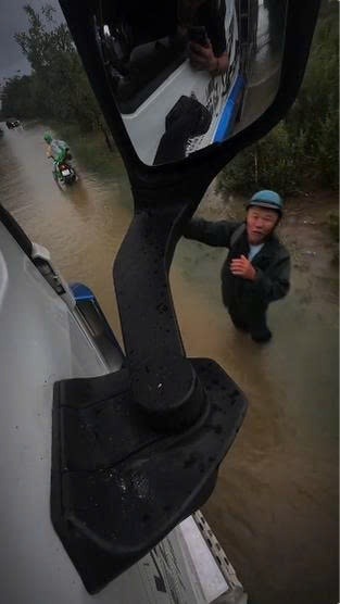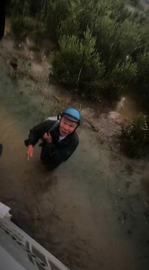 Ngày 17/11, khi đi qua khu vực bị ngập lụt thuộc làng Bao La (xã Đan Điền, Huế), tài xế xe tải Nguyễn Tấn Hùng (37 tuổi, Đắk Lắk), nhìn thấy người đàn ông lớn tuổi đứng bên đường vẫy lại cho con trai đi nhờ.