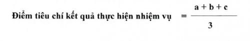 Trong đó, a là điểm tỉ lệ phần trăm số lượng kết quả thực hiện nhiệm vụ theo quy định; b là điểm tỉ lệ phần trăm về chất lượng kết quả thực hiện; c là điểm tỉ lệ phần trăm về tiến độ.