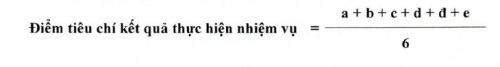 Trong đó, (a) là điểm số lượng; (b) điểm kết quả; (c) điểm tiến độ; (d) điểm kết quả lĩnh vực được giao quản lý; (đ) điểm khả năng tổ chức thực hiện nhiệm vụ; (e) điểm năng lực tập hợp, đoàn kết.