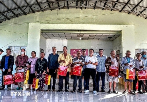 Ủy ban Mặt trận Tổ quốc Việt Nam trao 250 phần quà cho các hộ nghèo, cận nghèo, hộ có hoàn cảnh khó khăn với tổng giá trị 150 triệu đồng ở Cà Mau. (Ảnh: TTXVN phát) |
