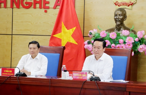 Tại điểm cầu Nghệ An, tham dự cuộc họp có các đồng chí: Nguyễn Đức Trung - Bí thư Tỉnh ủy; Lê Hồng Vinh – Phó Bí thư Tỉnh ủy, Chủ tịch UBND tỉnh; các đồng chí Ủy viên Ban Thường vụ Tỉnh ủy: Nguyễn Văn Đệ - Phó Chủ tịch UBND tỉnh, Hoàng Quốc Việt –Giám đốc Sở Nông nghiệp và Môi trường; Đặng Thanh Tùng- Tỉnh ủy viên, Chánh Văn phòng UBND tỉnh; lãnh đạo Sở Tài chính.
