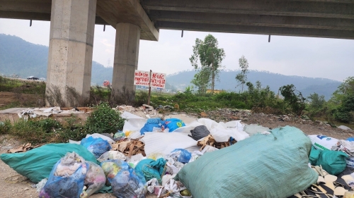 Đường gom cao tốc trở thành điểm tập kết rác thải. |