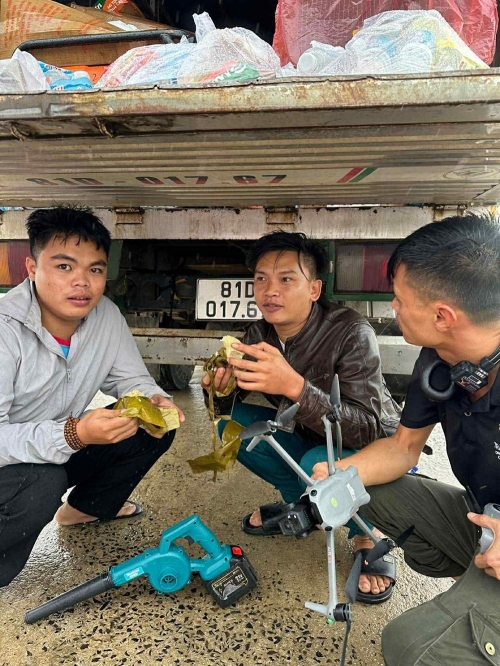 Nếu như những lần cứu hộ trước ở Thái Nguyên, mỗi chuyến drone có thể chở 30 - 40 kg lương thực thì lần này buộc phải giảm tải vì gió mạnh. Dù vậy, cả nhóm vẫn nỗ lực hết sức để chuyển được nhiều hàng hóa nhất có thể.