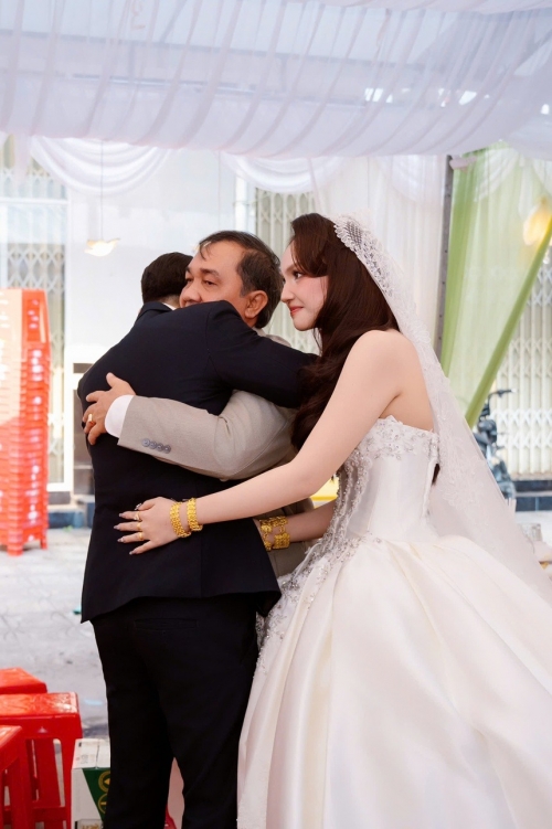 Sau khi hoàn tất nghi thức đưa cô dâu về nhà chồng, đoàn nhà gái chuẩn bị ra về. Sợ con gái không cầm được nước mắt, mẹ Mai Thư kéo chồng lên xe trước. Tuy nhiên, chú rể Minh Luân mới là người xúc động mạnh. Anh chạy theo lên xe, nắm chặt tay rồi ôm hôn cha vợ, trong khi mắt đỏ hoe vì khóc.