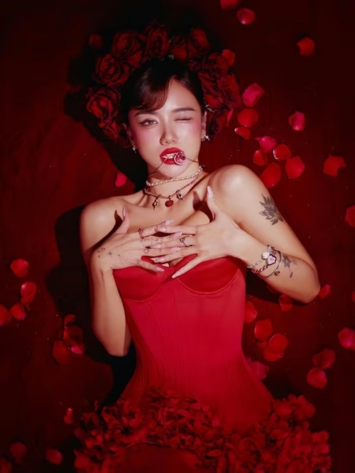 Trong loạt ảnh mới, Phương Ly hóa thân thành một "nàng hồng" kiều diễm và nóng bỏng. Với sắc đỏ trung tâm, bộ ảnh mang đến một không gian đậm chất lãng mạn nhưng cũng không kém phần bí ẩn. (Ảnh: IGNV) |