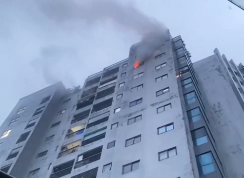 Cư dân sống trong tòa nhà nghe chuông báo cháy vang lên nên lập tức rời khỏi tòa nhà để đảm bảo an toàn.