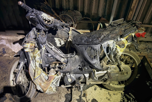 Một chiếc xe máy bị thiêu rụi. Ảnh: P.A. |