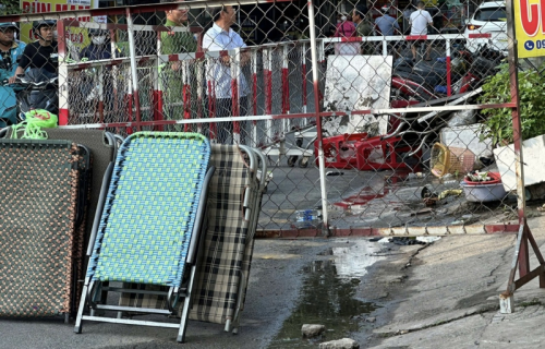 Hiện trường được phong tỏa phục vụ công tác điều tra. |