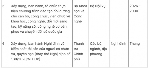 Theo đó, Quyết định nêu rõ nhiệm vụ trọng tâm cần thực hiện trong giai đoạn 2026-2030 là: Rà soát, sửa đổi, bổ sung, ban hành mới các quy định pháp luật để tổ chức triển khai đồng bộ, hiệu quả Luật Cán bộ, công chức năm 2025 và Luật Viên chức năm 2025.