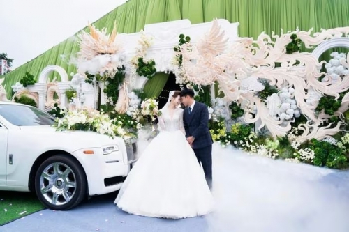Theo đó, chiếc xe góp mặt trong ngày cưới là Rolls-Royce Ghost 2015, dòng sedan siêu sang có giá trị hơn 30 tỷ đồng tại Việt Nam. Sự xuất hiện của mẫu xe này lập tức trở thành điểm nhấn, góp phần làm nổi bật không gian sang trọng của buổi lễ.