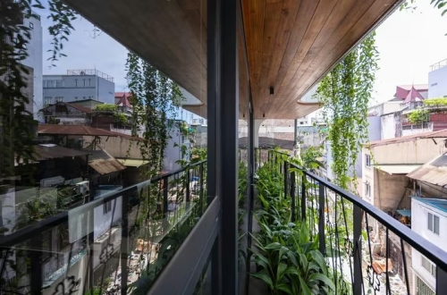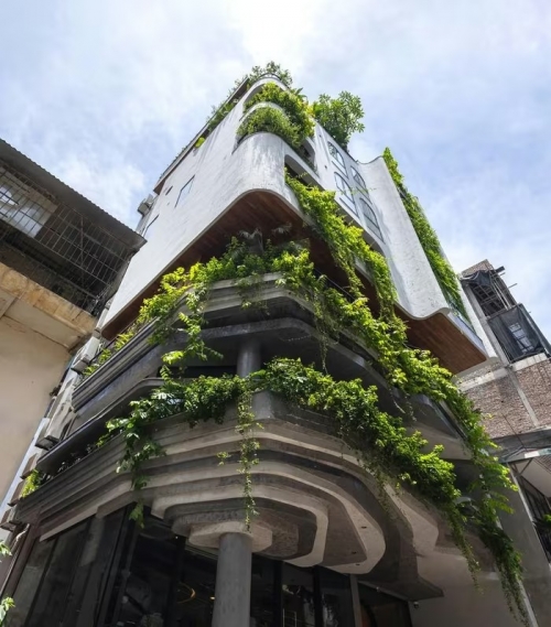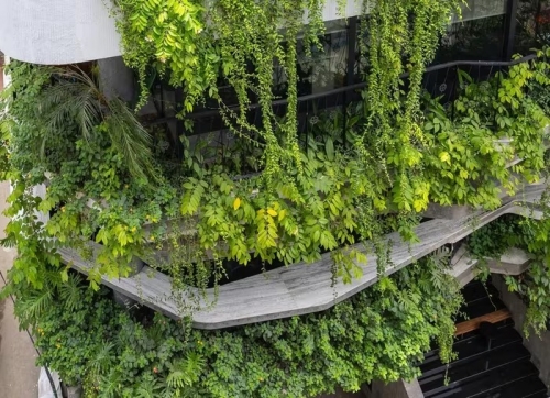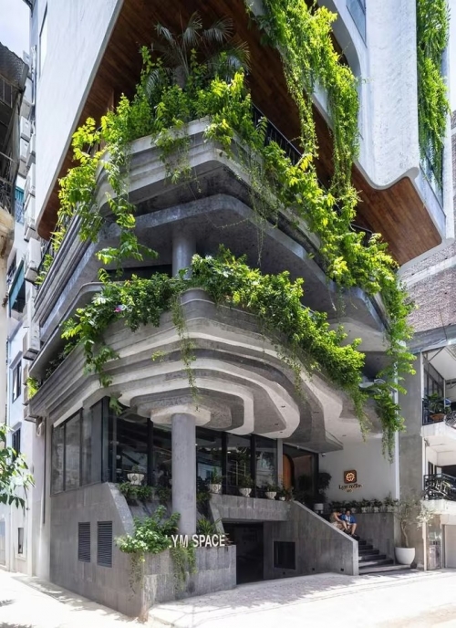 Tòa nhà còn đóng vai trò như một một ốc đảo xanh tươi đan xen giữa cảnh quan đường phố. Ảnh: Triệu Chiến |