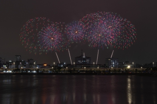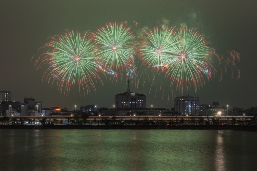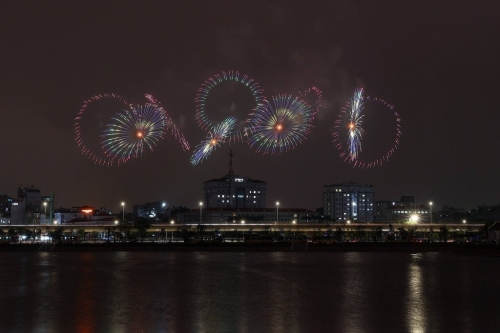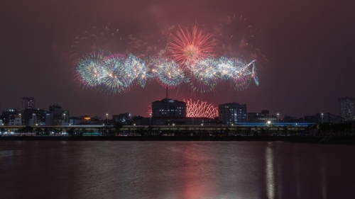 Theo đại diện ban tổ chức, kịch bản bắn pháo hoa hôm nay chỉ tương đương 5% so với quy mô màn trình diễn chính thức sẽ diễn ra vào ngày bế mạc Đại hội đại biểu toàn quốc lần thứ XIV của Đảng. Ảnh: Hiệp Nguyễn. |