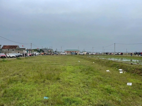 Xe ô tô của môi giới, người dân đậu kín đường để tìm hiểu mua đất tại xã Đại Huệ, tỉnh Nghệ An đầu năm 2026 |