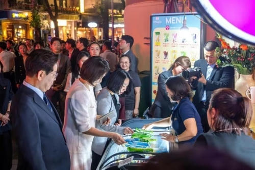 Tại khu phố cổ, vợ chồng Tổng thống Hàn Quốc đã thưởng thức thịt xiên nướng, sầu riêng và nước mía không đá tại một quán bình dân nằm ở góc phố Hàng Gai giao Tố Tịch. Tại đây chuyên bán các loại trái cây nhập từ miền Nam. Hiện sầu riêng đang vào mùa với sớ thịt chắc, thơm và ngọt.