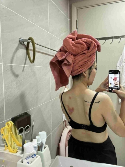 Đến tối, chị chủ động vào phòng xin lỗi chồng, không hề có ý định to tiếng. Tuy nhiên, người chồng to tiếng chửi bới, đỉnh điểm là kéo lê chị ra hành lang và đánh đập dã man trước sự chứng kiến của hàng xóm, chị cho biết.