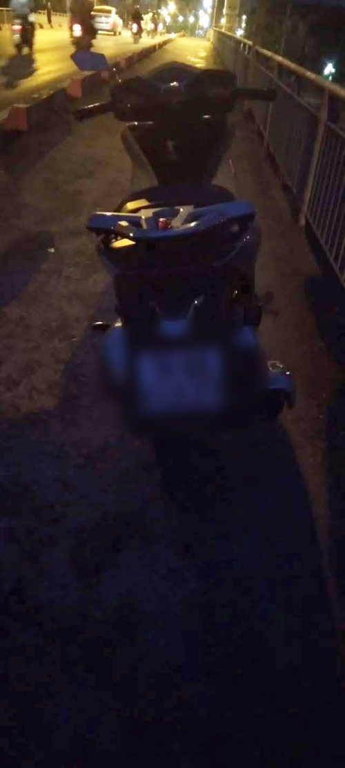 Chiếc xe máy nam thanh niên đã bỏ lại trên cầu Đò Quan (Nam Định) vào sáng sớm ngày 10/11 |
