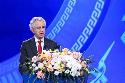 Giáo sư Richard Henry Friend - Chủ tịch Hội đồng Giải thưởng VinFuture phát biểu khai mạc. Ảnh: Hoàng Hiếu/TTXVN |
