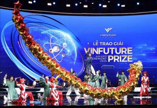 Chủ tịch Quốc hội Trần Thanh Mẫn và đại biểu dự Lễ trao giải VinFuture 2025. Ảnh: Doãn Tấn/TTXVN |