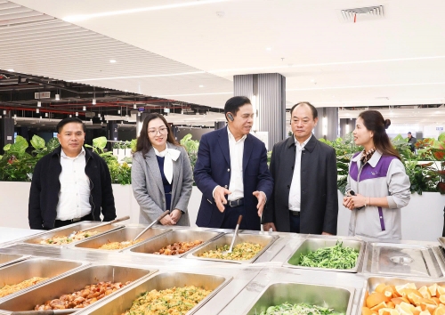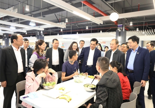 Chủ tịch UBND tỉnh Võ Trọng Hải thăm quan khu ăn uống của công nhân… |