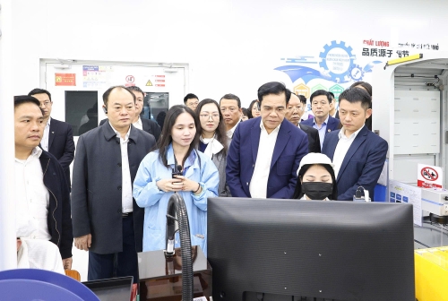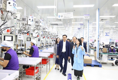 Chủ tịch UBND tỉnh Võ Trọng Hải và các thành viên đoàn công tác đã kiểm tra tình hình sản xuất tại Tập đoàn Luxshare |
