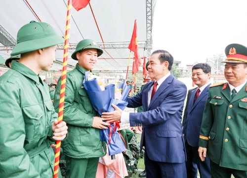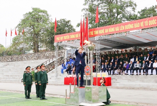 Phát biểu động viên các tân binh lên đường nhập ngũ, Trưởng ban Tổ chức Tỉnh uỷ Phạm Trọng Hoàng cho biết, tiếp bước truyền thống quê hương anh hùng, hằng năm Nghệ An có trên 3.000 thanh niên lên đường thực hiện nghĩa vụ quân sự và nghĩa vụ Công an nhân dân. Trong bất cứ hoàn cảnh nào, cán bộ, chiến sĩ là người con quê hương xứ Nghệ luôn thể hiện bản lĩnh, nỗ lực cố gắng, khắc phục khó khăn, đoàn kết, hoàn thành xuất sắc mọi nhiệm vụ được giao. Kỳ này, toàn tỉnh có 3.816 thanh niên ưu tú sẵn sàng tiếp bước truyền thống cha anh, khoác lên mình màu áo người chiến sĩ, dấn thân vào môi trường rèn luyện đầy thử thách nhưng vô cùng vinh quang. Trong đó, có 3.450 thanh niên nhập ngũ vào Quân đội nhân dân; 366 thanh niên thực hiện nghĩa vụ Công an nhân dân.