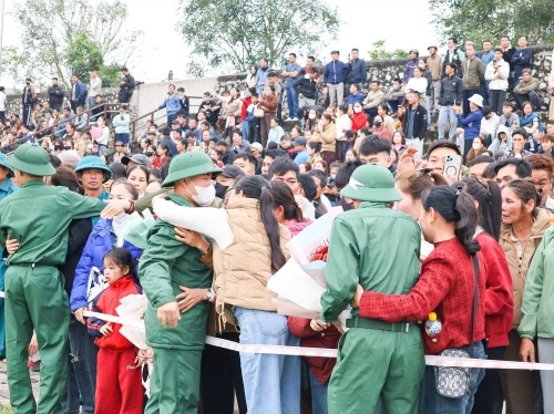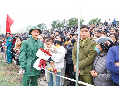 Đông đảo người dân có mặt từ sáng sớm để động viên các thanh niên lên đường nhập ngũ. |