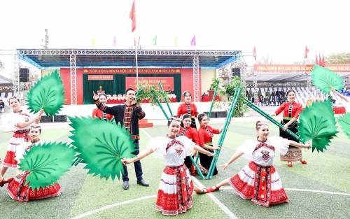 Tiết mục văn nghệ mang đậm bản sắc văn hoá chào mừng lễ giao, nhận quân |