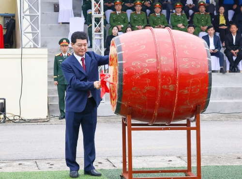 Trưởng ban Tổ chức Tỉnh uỷ Phạm Trọng Hoàng nổi trống mở hội giao quân |