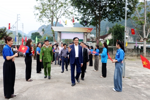 Chủ tịch UBND tỉnh Võ Trọng Hải và đoàn công tác kiểm tra công tác chuẩn bị bầu cử tại thôn Tân Lập |