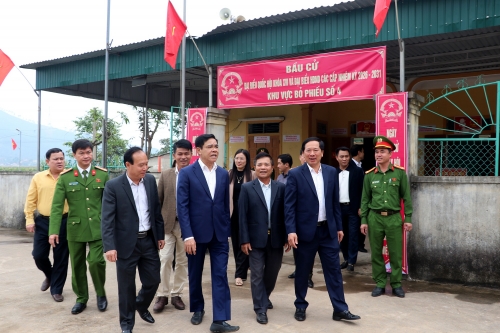 Chủ tịch UBND tỉnh Võ Trọng Hải và đoàn công tác kiểm tra công tác chuẩn bị bầu cử tại khu vực bỏ phiếu số 4, xóm Nam Thung, xã Vạn An |