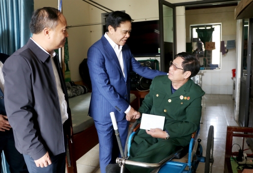 Tiếp đó, Chủ tịch UBND tỉnh cùng đoàn công tác đã đến thăm, tặng quà cho Trung tâm điều dưỡng Thương binh Nghệ An. Đây là đơn vị mới được thành lập trên cơ sở hợp nhất Trung tâm điều dưỡng Thương binh Nghệ An và Khu điều dưỡng thương binh tâm thần kinh Nghệ An. Vượt qua những khó khăn về tổ chức bộ máy sau hợp nhất, thiếu thốn về điều kiện cơ sở vật chất, Trung tâm đã làm tốt nhiệm vụ chăm sóc, điều dưỡng 108 thương, bệnh binh và thân nhân người có công; làm tốt công tác đền ơn đáp nghĩa đối với những người đã cống hiến, hy sinh xương máu vì đất nước.