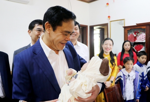 Chủ tịch UBND tỉnh Võ Trọng Hải thăm, tặng quà và ân cần hỏi thăm sức khỏe, cuộc sống và việc học tập của các cháu nhỏ |
