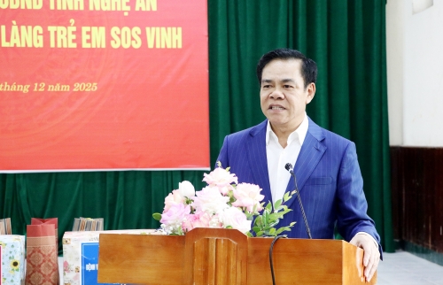 Tặng quà cho các cháu nhỏ nhân dịp đón năm mới 2026, Chủ tịch UBND tỉnh Võ Trọng Hải nhắn nhủ và mong muốn các cháu phải biết yêu thương, đùm bọc lẫn nhau “anh chị lớn nhường nhịn, chăm sóc em nhỏ”; những cháu đã trưởng thành cùng chia sẻ trách nhiệm với các mẹ, yêu thương, đùm bọc, dìu dắt các em nhỏ trong gia đình để Làng trẻ SOS trở thành ngôi nhà chung, đầy tình yêu thương cho trẻ mồ côi trên địa bàn.