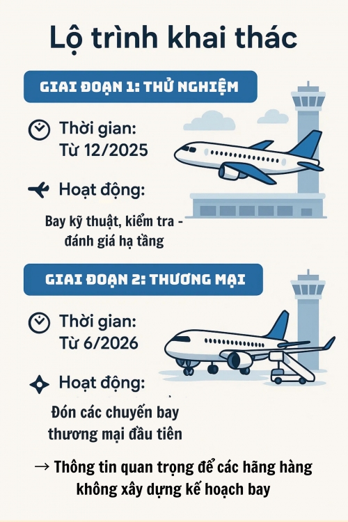 Cục Hàng không Việt Nam cũng đề nghị Vietjet và Bamboo Airways phối hợp chặt chẽ với Cảng hàng không quốc tế Long Thành để chuẩn bị các điều kiện khai thác khu bay theo yêu cầu, bố trí tàu bay, tổ lái và nhân sự kỹ thuật phù hợp, đồng thời cập nhật đầy đủ các thông tin, thông số kỹ thuật của sân bay đã được công bố.