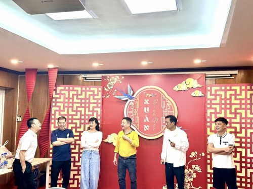 Hình ảnh các nghệ sĩ tập luyện cho tiểu phẩm Táo quân trong chương trình kỷ niệm 30 năm số phát sóng đầu tiên của VTV3. |