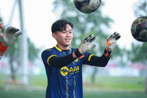 Tại Vòng chung kết Giải U17 Quốc gia 2022, Bảo Ngọc cũng từng đạt danh hiệu Thủ môn xuất sắc nhất giải, được triệu tập lên tuyển U17 Quốc gia chuẩn bị cho vòng loại U17 châu Á diễn ra vào đầu tháng 10 cùng năm. Hiện tại, anh được đánh giá có nhiều triển vọng khi sở hữu hình thể chuẩn, chiều cao 1,85 m. Ảnh: SLNA/Facebook. |