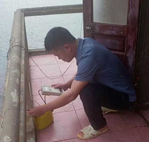 Quan trắc viên Nguyễn cảnh Long đo độ mặn nước biển trên đảo Hòn Ngư. Ảnh: Thắng Trung/Bnews/vnanet.vn |