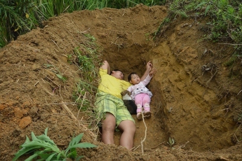 Anh Zhang Liyong đào mộ, nằm cùng con gái. Ảnh: QQ. |