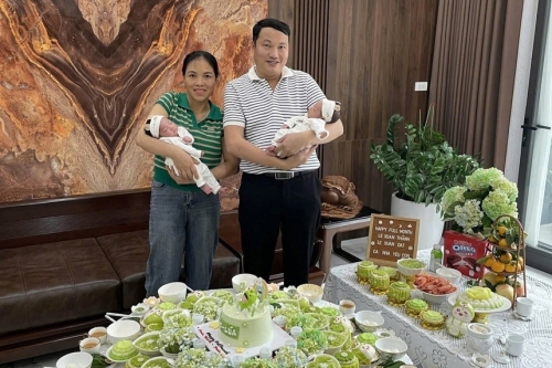 Sau cùng, bà Hương đậu thai. Tin vui đến khiến các thành viên trong gia đình nhẹ nhõm. Hai bé song sinh chào đời với cân nặng lần lượt 2,2 kg và 2,3 kg, khỏe mạnh, ăn ngủ đều đặn.