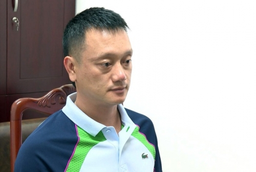 "Trùm giang hồ" Mạnh "gỗ" tại cơ quan công an. Ảnh: Công an tỉnh Thanh Hóa |
