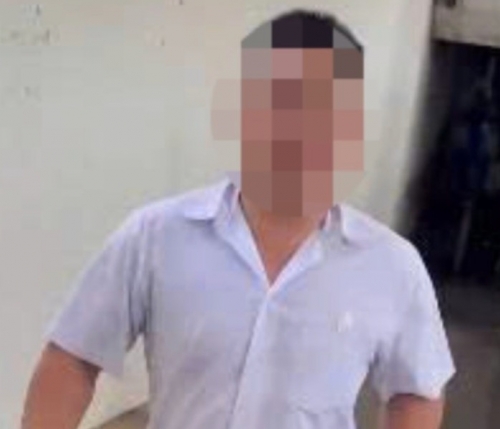 Người đàn ông áo trắng lao vào xô xát với người quay phim tại lối vào nhà đại thể của Bệnh viện Đa khoa Đồng Nai (Ảnh cắt từ clip) |