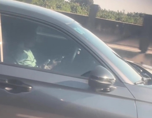 Tài xế ô tô "cắm mặt" vào điện thoại khi lái xe trên cao tốc bị cảnh sát giao thông ghi hình - Ảnh: C08 |