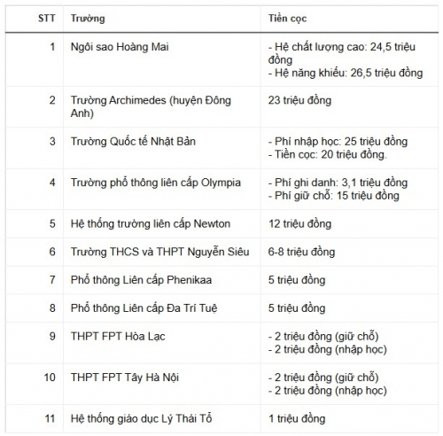 Theo khảo sát của Tri Thức - Znews, năm học 2026-2027, phí đặt vào lớp 10 trường ngoài công lập ở Hà Nội rất đa dạng, dao động từ vài triệu cho đến hàng chục triệu đồng, do các trường tự quy định. Cụ thể như sau: