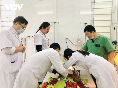 Ngay khi tiếp nhận bệnh nhi, kíp trực cấp cứu tại Trung tâm Y tế Quỳ Châu đã lập tức triển khai các biện pháp hồi sức khẩn cấp. Các bác sĩ tiến hành thực hiện nghiệm pháp Heimlich phối hợp với ép tim ngoài lồng ngực và hỗ trợ hô hấp tích cực. Qua thăm khám nhanh, kíp trực phát hiện một hạt nhãn mắc kẹt sâu trong đường thở và đã nhanh chóng gắp bỏ dị vật, khai thông đường hô hấp cho trẻ.